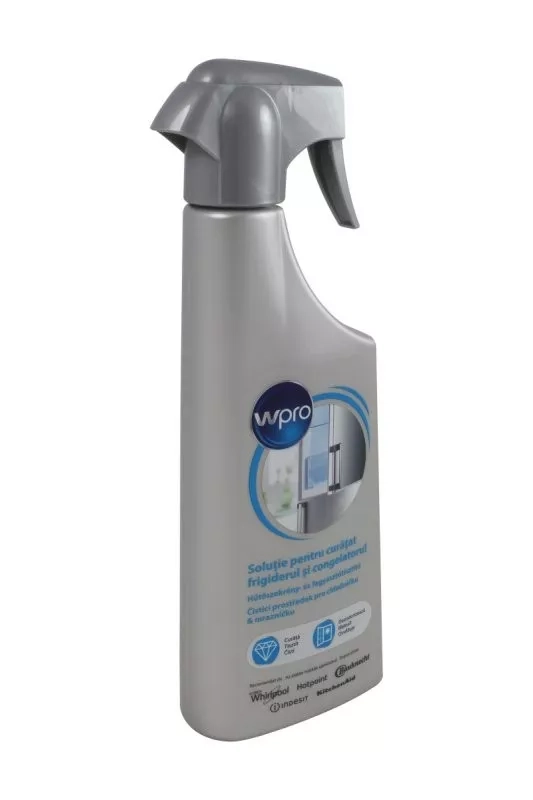 Čisticí prostředek Wpro s profesionálním složením odstraňuje skvrny a zbytky jídel z Vaší chladničky či mrazáku a zanechává příjemnou citrónovou vůni.