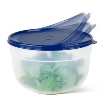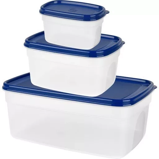 Dóza k uchovávání jídla SUPERLINE, kulatá nebo obdélníková, modrá, pružné uzavírací víko, snadné otevírání a uzavírání, bezpečné pro použití v mikrovlnné troubě, mrazničce a myčce, je kompaktní a 100% šetří prostor, barva: průhledná/modrá. Nádoba k uchovávání jídla, která udrží vaše jídlo déle čerstvé.