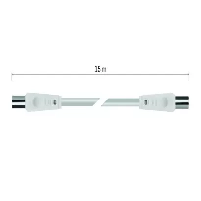 Anténní koaxiální kabel s vidlicí a zásuvkou IEC. Kabel má dvojité stínění pro redukci elektromagnetického rušení. Délka kabelu je 15 m. Koaxiální kabel je vhodný pro SAT, DVB-T, ANT, DECODER, FLAT TV a TV.