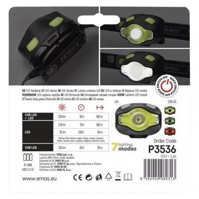 EMOS COB LED + LED čelovka P3536, 220 lm, 100 m, 3× AAA