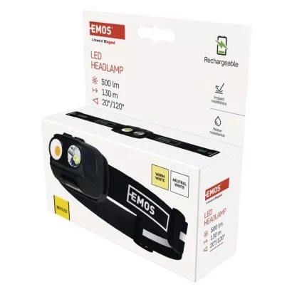 EMOS COB LED nabíjecí čelovka P3542, 500 lm, 130 m, Li-pol 1200 mAh