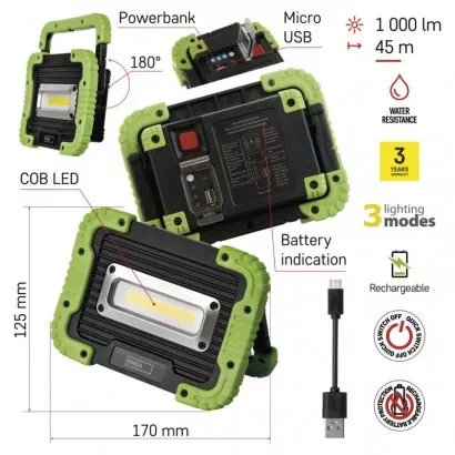 EMOS COB LED nabíjecí pracovní reflektor P4533, 1000 lm, 4400 mAh