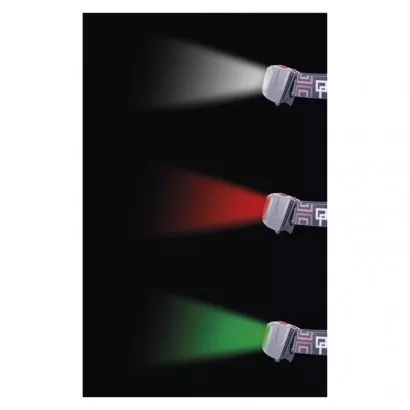 režimy svícení: COB LED + CREE LED 100 %, CREE LED 100 %, CREE LED 50 %, CREE LED – blikání, COB LED – bílá, COB LED – zelená, COB LED – červená
