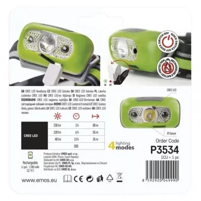 EMOS CREE LED nabíjecí čelovka P3534, 230 lm, 80 m, Li-Pol 1200 mAh
