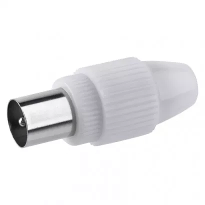 IEC konektor vidlice je určen k napojení na koaxiální kabel a má bílou barvu. Prodává se po 10 ks a je plastový.