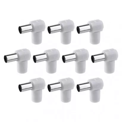 IEC konektor úhlová zásuvka je určen k napojení na koaxiální kabel a má bílou barvu. Prodává se po 10 ks a je plastový.