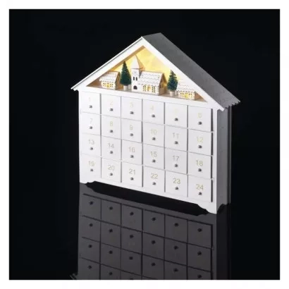 EMOS LED adventní kalendář dřevěný, 35x33 cm, 2x AA, vnitřní, teplá bílá, časovač