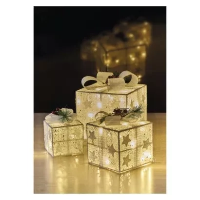 EMOS LED dárky s ozdobou, 3 velikosti, vnitřní, teplá bílá