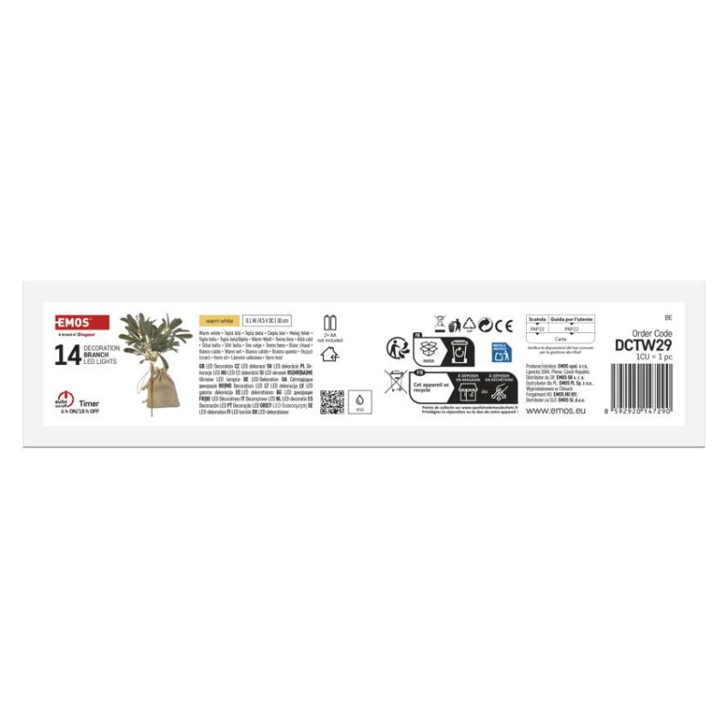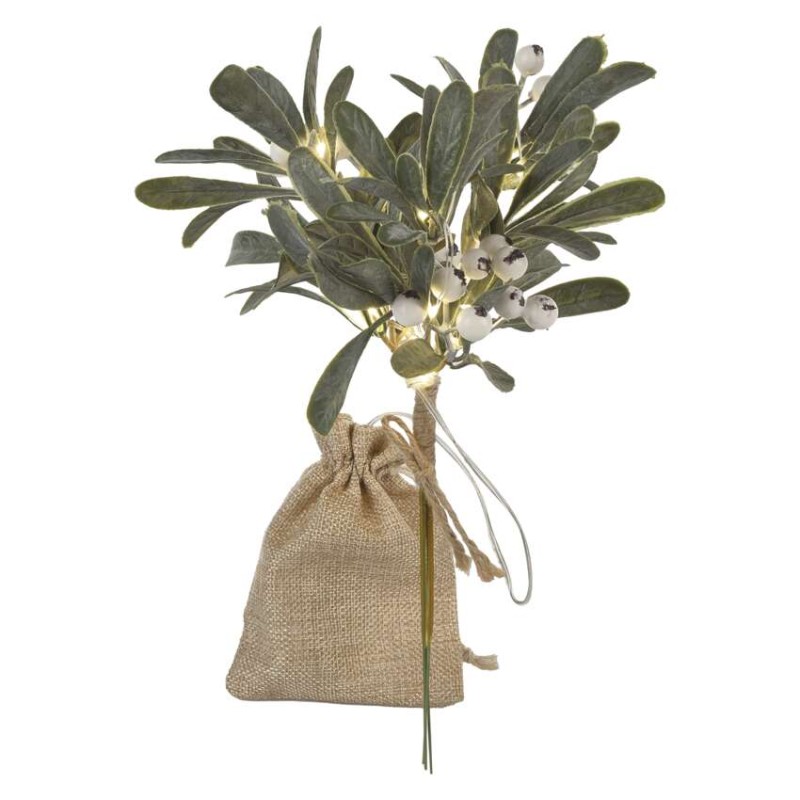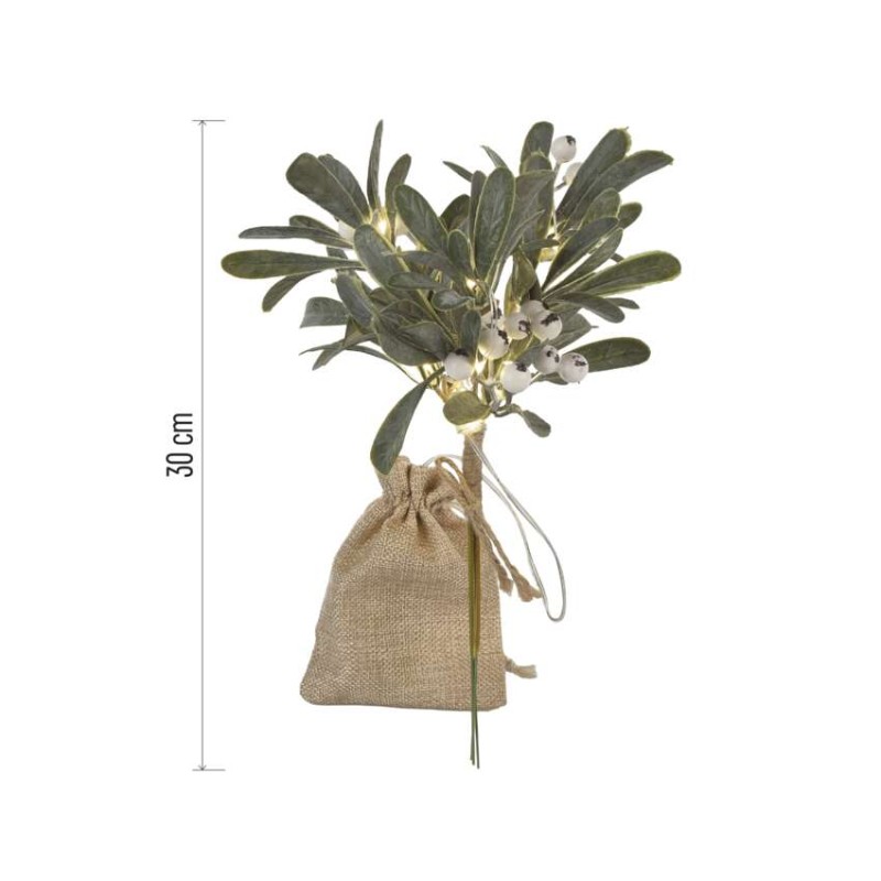 EMOS LED dekorace – větvička jmelí, 2x AA, teplá bílá, časovač