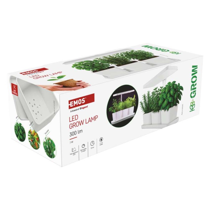 EMOS LED GROW pěstební lampa 7 W, časovač, stmívatelná, bílá