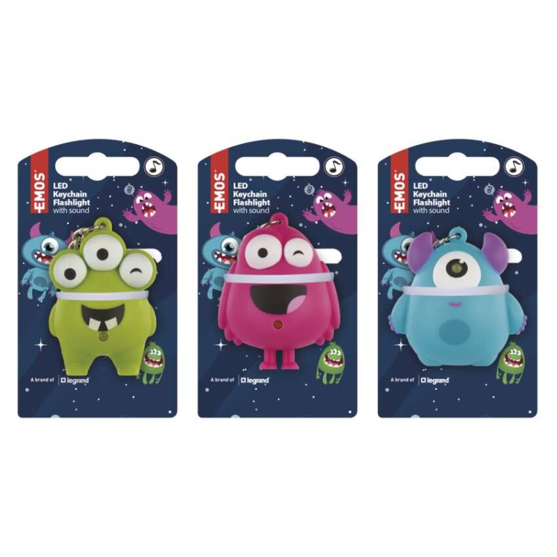 EMOS LED klíčenka - příšerky se zvukem, 18 ks, display box