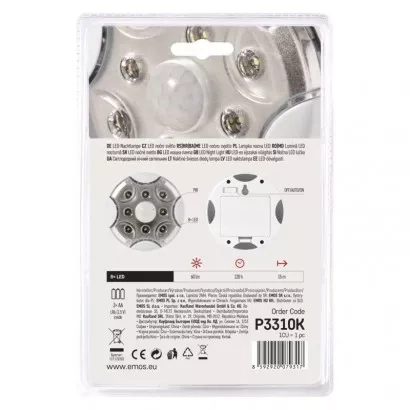 EMOS LED noční světlo P3310K s pohybovým čidlem na 3× AA