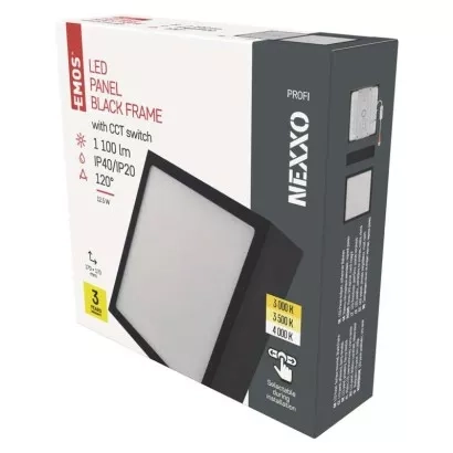 EMOS LED přisazené svítidlo NEXXO, čtvercové, černé, 12,5W, se změnou CCT