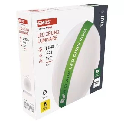 EMOS LED přisazené svítidlo TIVI, A CLASS, kruhové bílé 11W, IP44, neutrální bílá