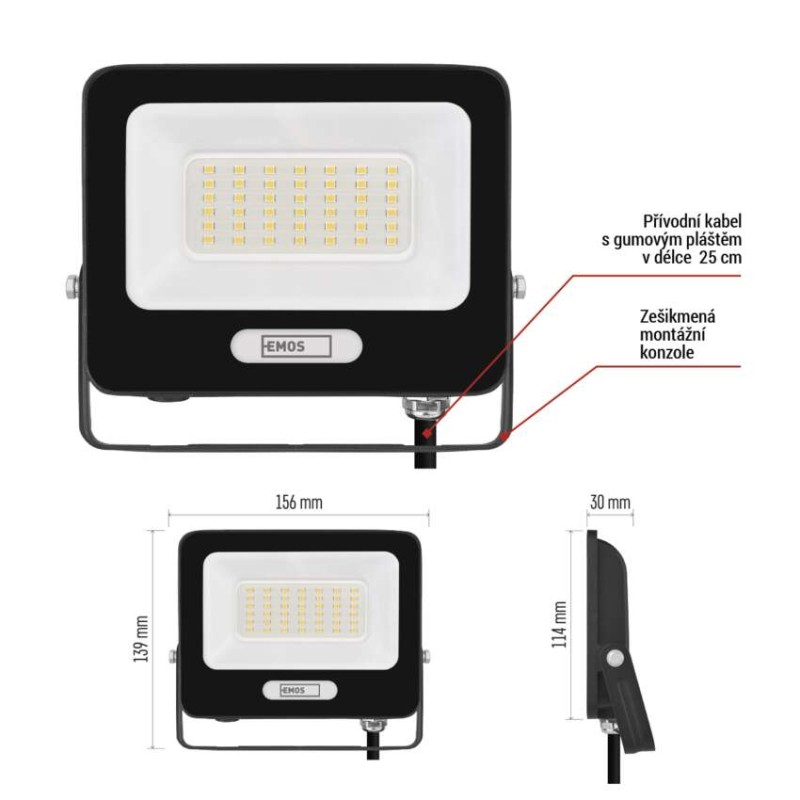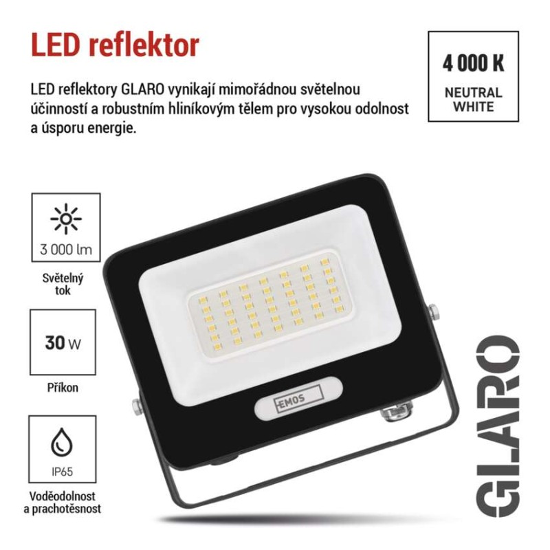 EMOS LED reflektor GLARO 30W, černý, IP65, 3000 lm, neutrální bílá