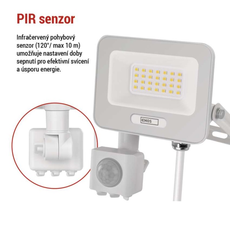 EMOS LED reflektor GLARO s pohybovým čidlem, 20 W, bílý, IP54, 2000 lm, neutrální bílá