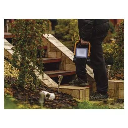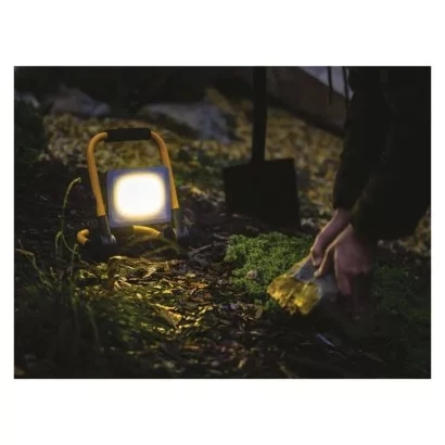 Široký úhel osvětlení plochy 110°.Odolnost vůči vodě a nárazu díky krytí IP44 a stupni ochrany IK10.Důmyslně řešené madlo a skládací konstrukce usnadňují transport reflektoru.Úspora energie až 75 % oproti běžným halogenovým reflektorům.Vhodné pro osvětlování pracovních činností: na stavbách, dílnách, v autoservisech, garážích apod.
