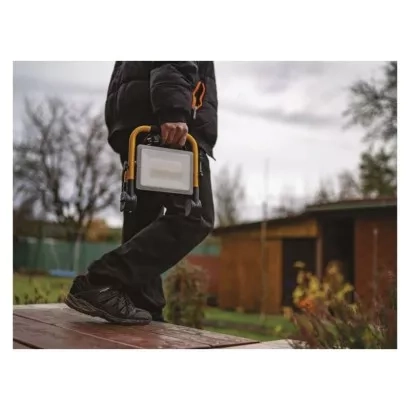 Široký úhel osvětlení plochy 110°.Odolnost vůči vodě a nárazu díky krytí IP44 a stupni ochrany IK10.Důmyslně řešené madlo a skládací konstrukce usnadňují transport reflektoru.Úspora energie až 75 % oproti běžným halogenovým reflektorům.Vhodné pro osvětlování pracovních činností: na stavbách, dílnách, v autoservisech, garážích apod.