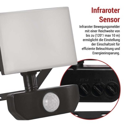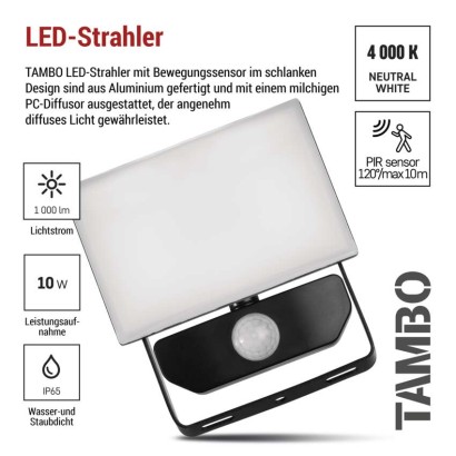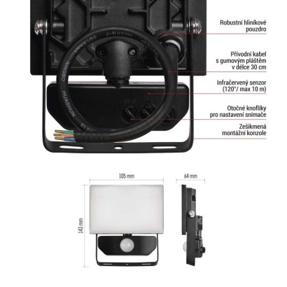 EMOS LED reflektor TAMBO se senzorem pohybu, 10 W, 1000 lm, černý