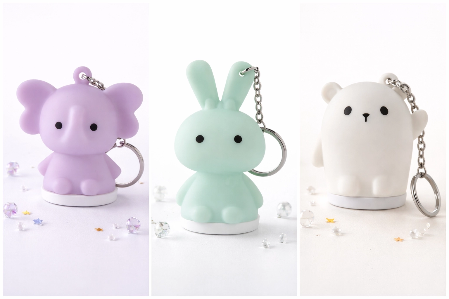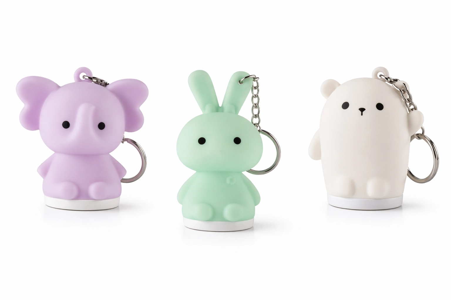 Drobná, ale praktická „rychlá“ svítilna, kterou můžete mít pořád u sebe. Roztomilý motiv zvířátka a měkké silikonové tělo z ní dělají oblíbený doplněk na klíče, batoh nebo kabelku – a zároveň pomůže, když potřebujete posvítit na zámek, do tašky nebo na cestu po tmě.
