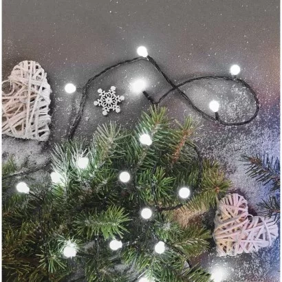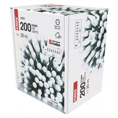 EMOS LED vánoční cherry řetěz – kuličky, 20 m, venkovní i vnitřní, studená bílá, programy
