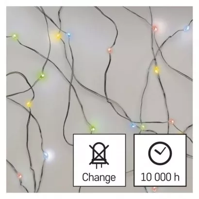 EMOS LED vánoční nano řetěz, 1,9 m, 2x AA, vnitřní, multicolor, časovač