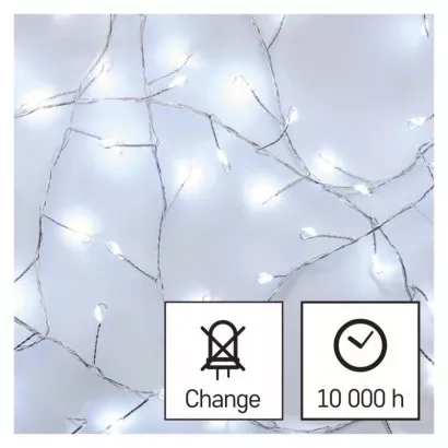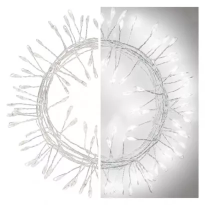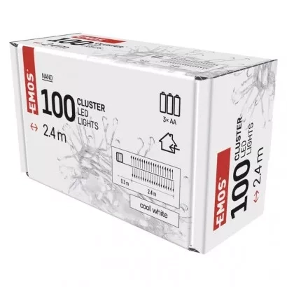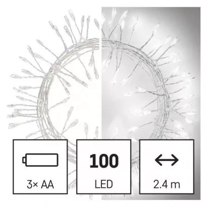 EMOS LED vánoční nano řetěz – ježek, 2,4 m, 3x AA, vnitřní, studená bílá, časovač
