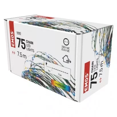 EMOS LED vánoční nano řetěz zelený, 7,5 m, venkovní i vnitřní, multicolor, časovač