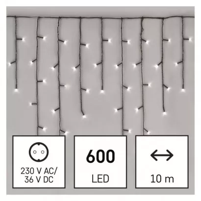 EMOS LED vánoční rampouchy, 10 m, venkovní i vnitřní, studená bílá, programy