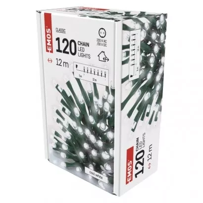 EMOS LED vánoční řetěz, 12 m, venkovní i vnitřní, studená bílá, časovač