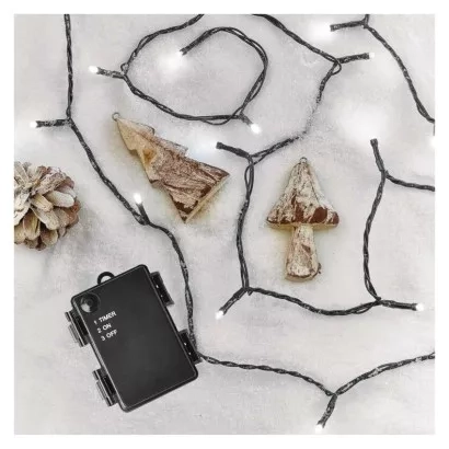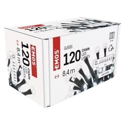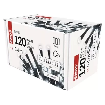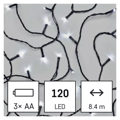 EMOS LED vánoční řetěz, 8,4 m, 3x AA, venkovní i vnitřní, studená bílá, časovač