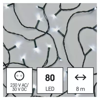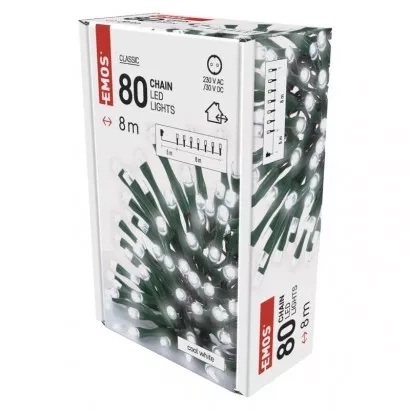 EMOS LED vánoční řetěz, 8 m, venkovní i vnitřní, studená bílá, časovač