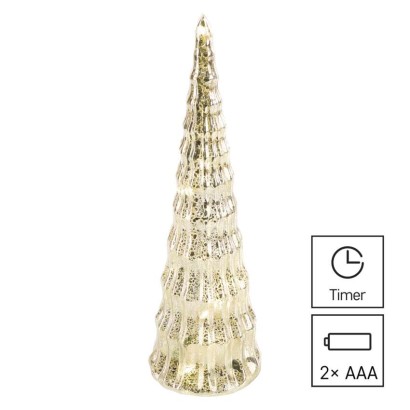 EMOS LED vánoční skleněný stromek, 27 cm, 2x CR2032, vnitřní, teplá bílá, časovač