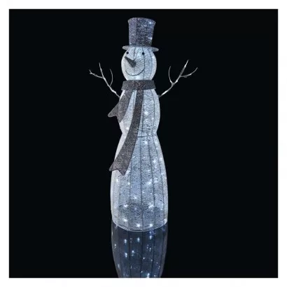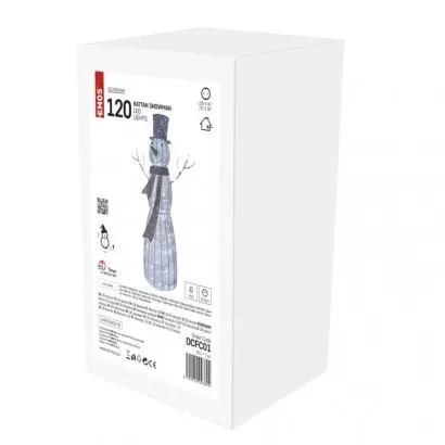 EMOS LED vánoční sněhulák ratanový, 124 cm, vnitřní, studená bílá, časovač
