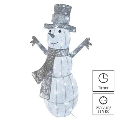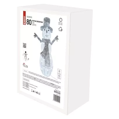EMOS LED vánoční sněhulák ratanový, 82 cm, venkovní i vnitřní, studená bílá, časovač