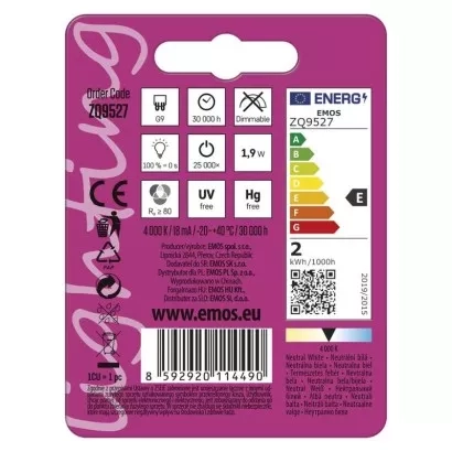 EMOS LED žárovka Classic JC / G9 / 1,9 W (22 W) / 210 lm / neutrální bílá