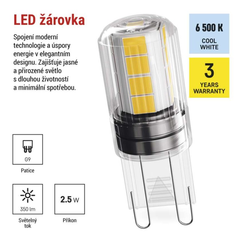 EMOS LED žárovka Classic JC / G9 / 2,5 W (32 W) / 350 lm / studená bílá