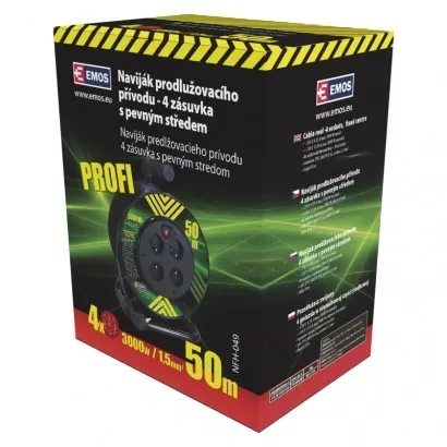 Naviják prodlužovacího přívodu s fixovaným středem. 4 zásuvky 230V~. Délka prodlužovacího přívodu 50m. Vodič PVC - H05VV-F3G 1,5mm2. Naviják má fixovaný střed což je obrovskou výhodou při manipulaci (rozmotávání/namotávání) s připojenými spotřebiči. Kvalitní naviják prodlužovacího přívodu. Je ideální pro prodloužení napájecí sítě 230V~. Jeho výhodou je pohodlná manipulace díky bubnu.