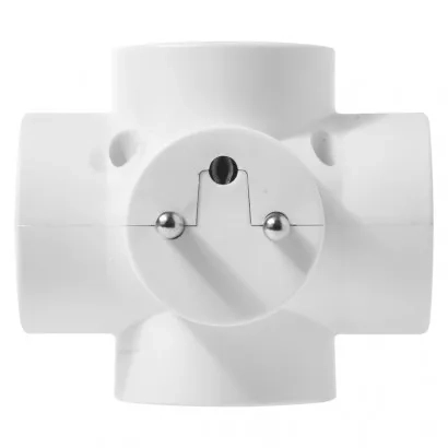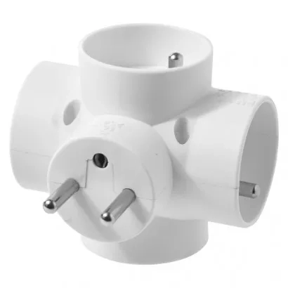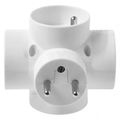 Rozbočovací zásuvka (adaptor) slouží k rozbočení zásuvky na více zásuvek. 250 V~ / 10 A max. 4× zásuvka 2P+PE.