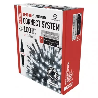 EMOS Standard LED spojovací vánoční řetěz, 10 m, venkovní i vnitřní, studená bílá