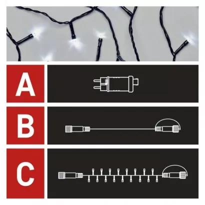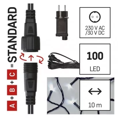 EMOS Základní sada pro spojovací řetězy Standard, 10 m, venkovní, studená bílá, časovač