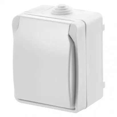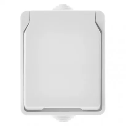 Kvalitní nástěnná voděodolná FRENCH zásuvka s ochraným víčkem.