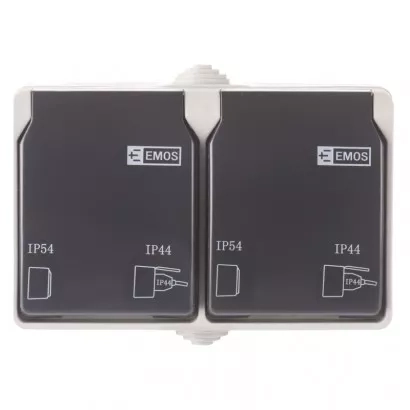 EMOS Zásuvka SCHUKO nástěnná dvojitá, šedo-černá, IP44
