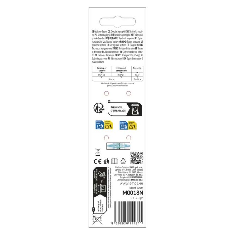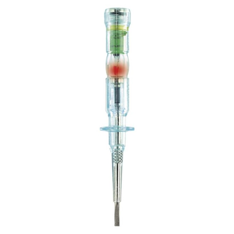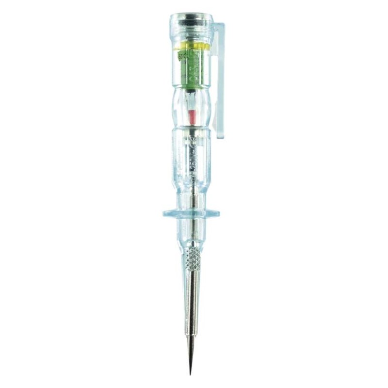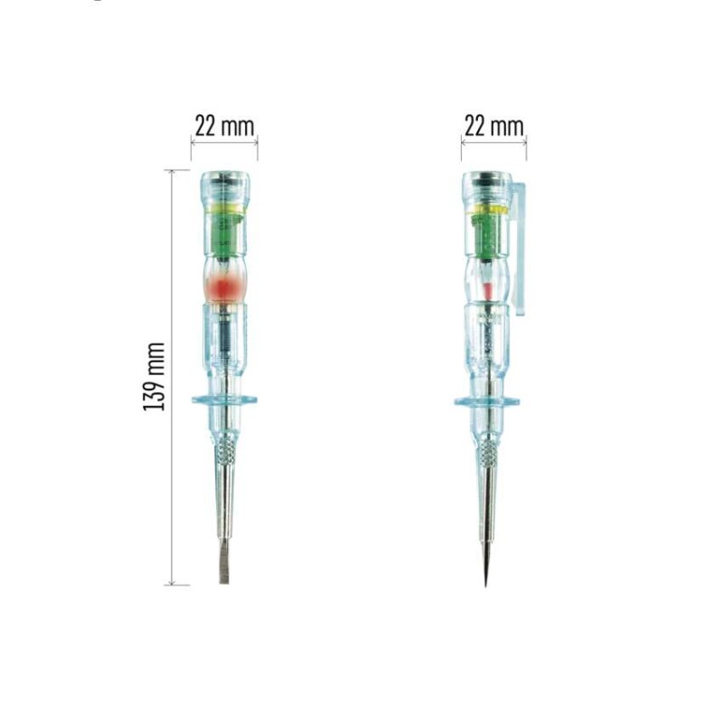 Zkoušečka napětí s optickou signalizací. Zkoušečka je určena ke zjišťování střídavého napětí 70–250 V a stejnosměrného napětí 0–250 V. Zkoušečka zjišťuje také polaritu zdrojů nebo zkrat. Zkoušečka napětí je napájena 2× LR41 (součást balení).