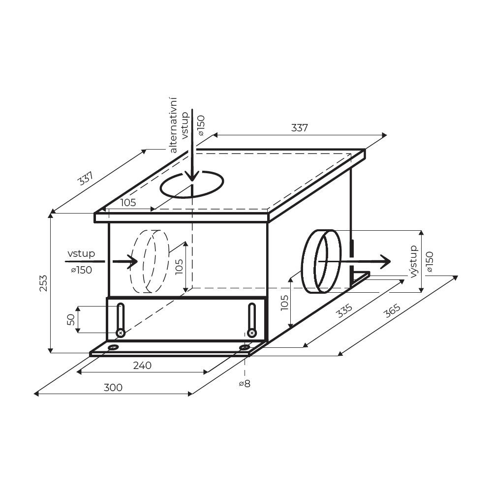 Externí ventilační jednotka EVJ M8S je určena k propojení s libovolnou bezmotorovou digestoří. Je osazena motorem EVO s výkonem až 700 m3/h a je vybavena svorkovnicí k individuálnímu napojení.