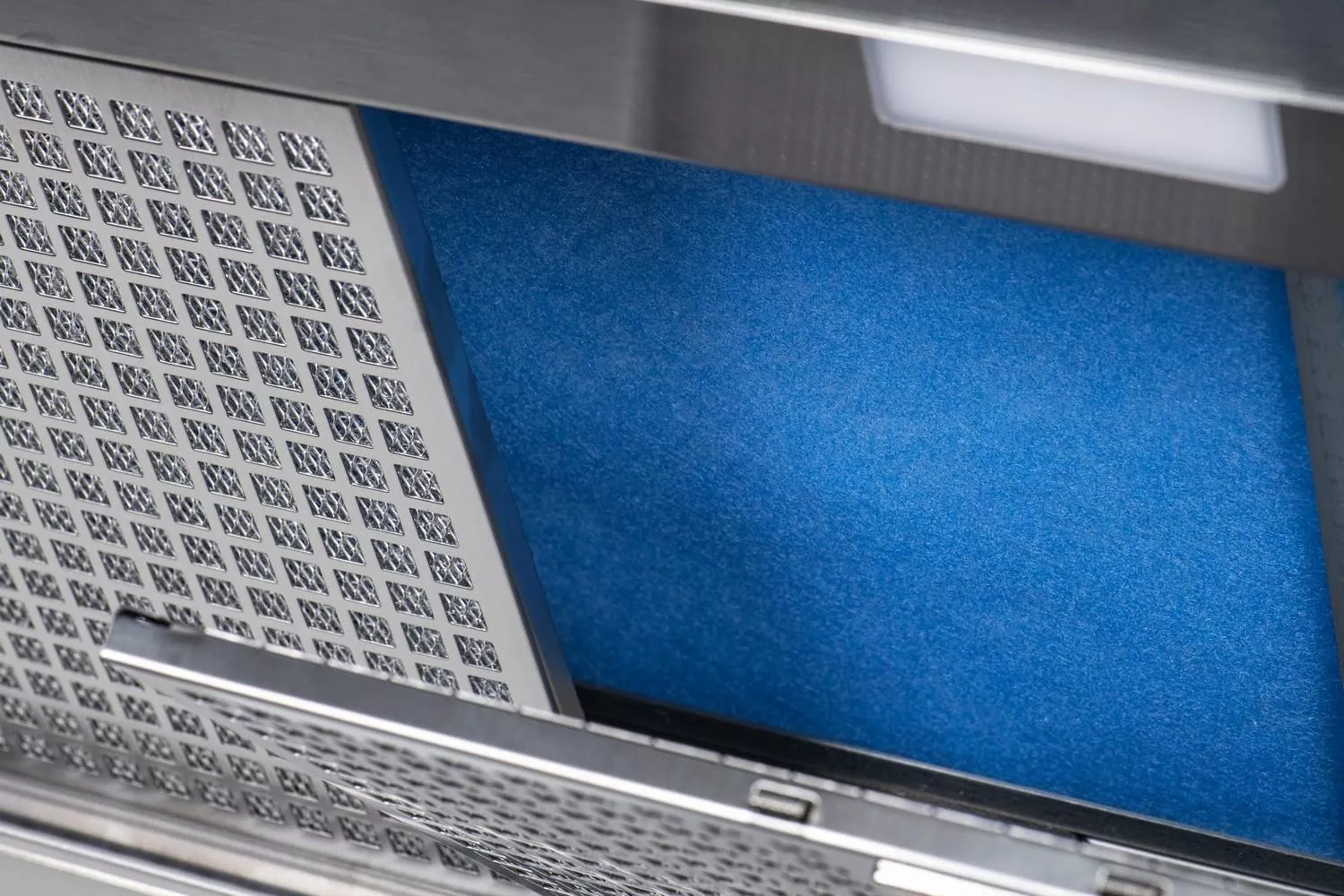 Dvoustupňová filtrace zaručuje dokonalé vyčištění odpadního vzduchu před vstupem do rekuperačního systému. Digestoř komunikuje s řídící jednotkou rekuperace. Spuštění odsávání i ovládání světel je intuitivní, kolébkovými vypínači.
