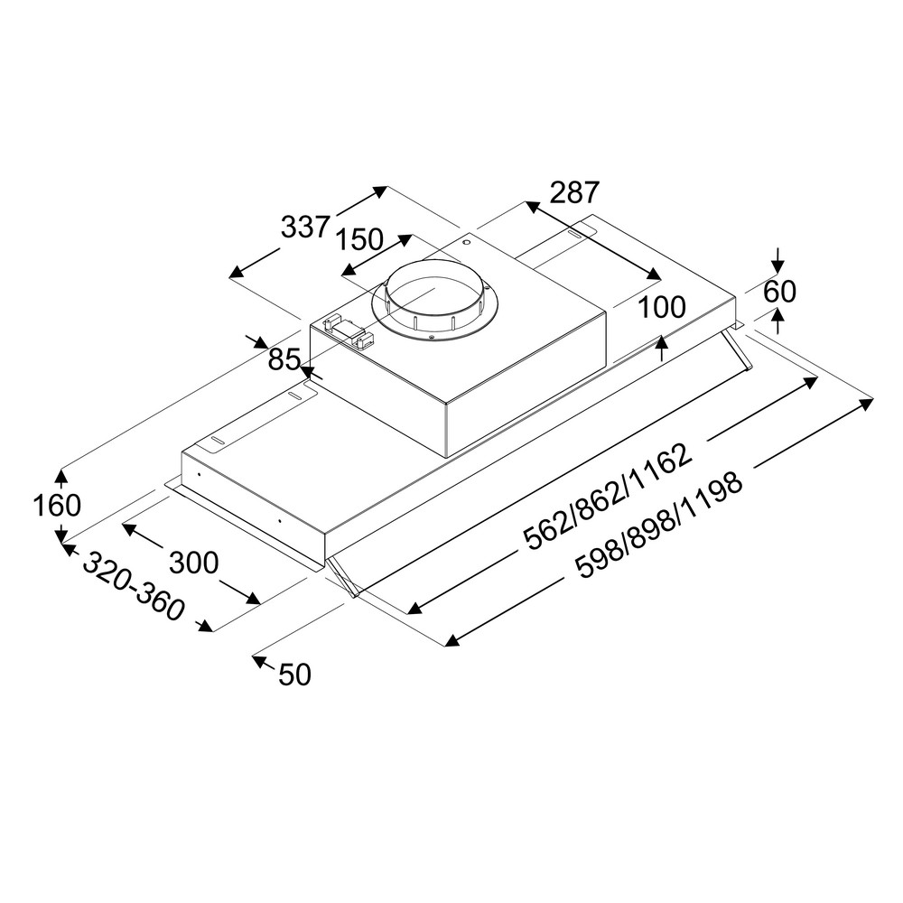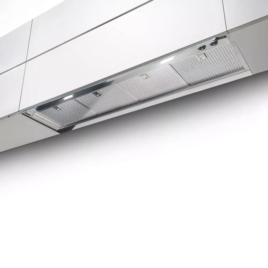 Je vyrobena z kvalitní nerezové oceli, její součástí je výklopný skleněný štítek, který podporuje zachycení par a chrání dolní hranu dvířek skříňky. Ve skříňce zabere jen velmi málo místa.