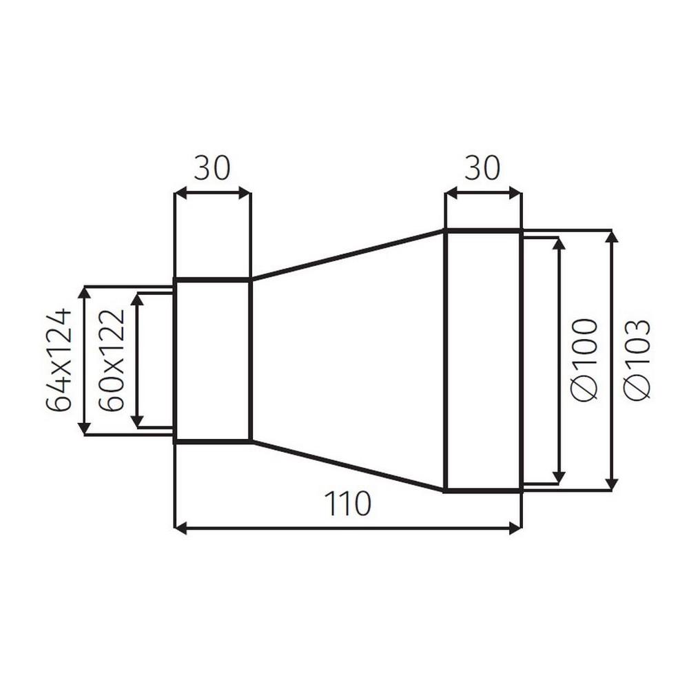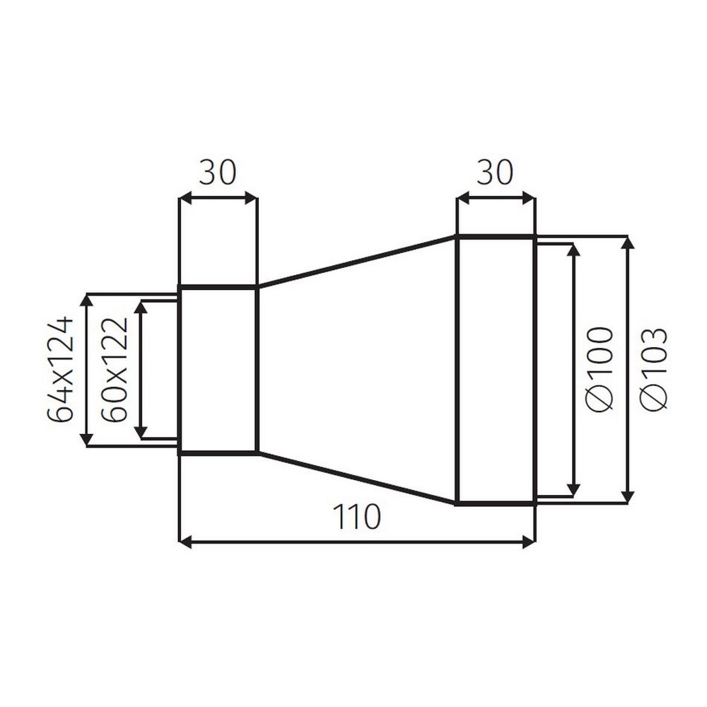 Přechod čtyřhran-kruh je určen k přechodu mezi různými tvary plastových potrubí a to tak, že se do sebe jednoduše zasunou. Redukce je vhodná do max. teploty 45°C a je vyrobena z hmoty ABS v bílé barvě.