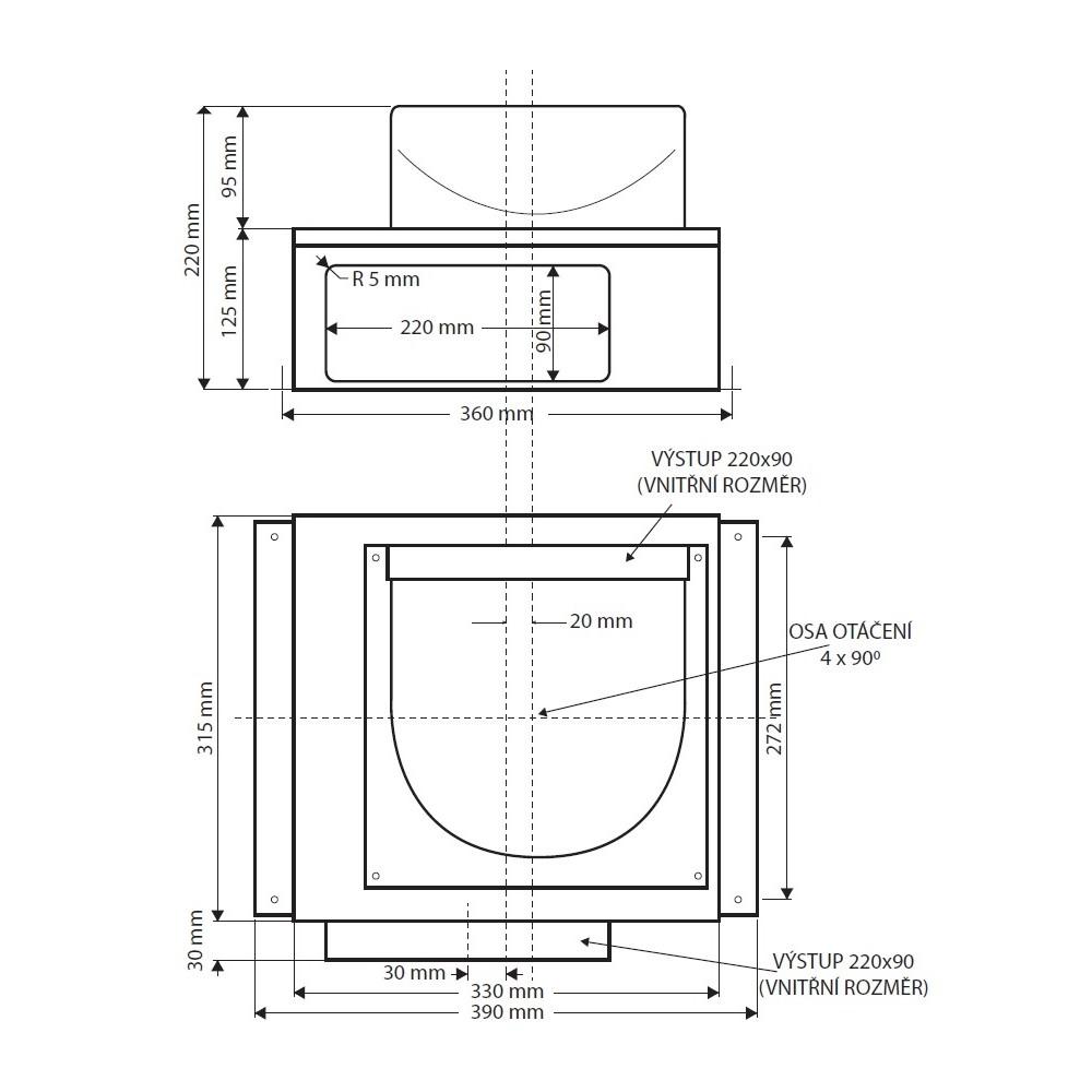 EVJ doporučujeme instalovat co nejdále od digestoře. Je vhodné použít tlumič hluku, minimalizuje se tím zpětné pronikání hluku potrubím, při maximálním výkonu až o 13 dB(A).