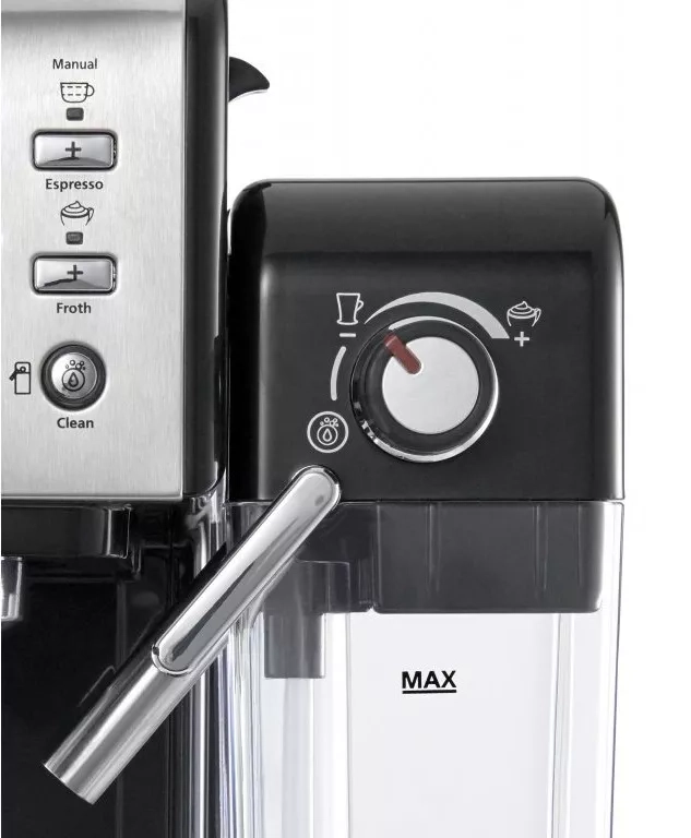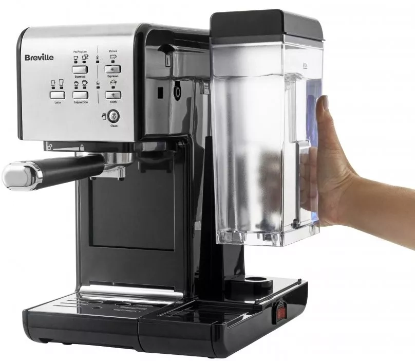 Kávovar Breville Prima Latte II je vybaven objemnou nádržkou na vodu s kapacitou 1,5 litru, díky níž připravíte až deset káv najednou. Nádržka na mléko s kapacitou 0,6 litru je jednoduše odnímatelná a můžete ji odděleně skladovat přímo v lednici. Tryska na mléko dokáže vytvořit nadýchanou mléčnou pěnu do vašich oblíbených kávovo-mléčných nápojů; tvorbu mléčné pěny je navíc možno spustit i samostatně bez přípravy kávy.